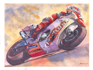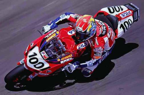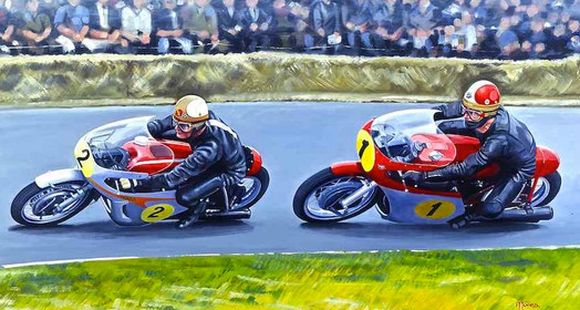 Competition controller Andy Fearn has a steadying hand on the great mans shoulder, before the off, for what proved to be Joey’s 8th Formula 1 win. My final JOEY DUNLOP artwork "FOCUSED"
