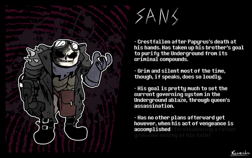 Hes code is corrupt and hes can transform in a moster glich , in this form is so fast and stronger but in this form hes cant go to another universe .hes can corrup codes , and hack pc , hes can invocade gaster blaster and bones