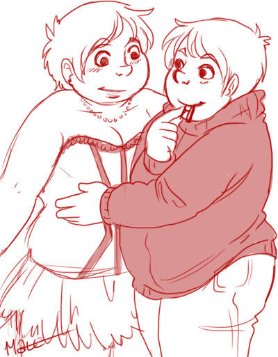 Some Karabita nonsense I felt like drawing today. Chibita can't resist a chubby Kara in jorts. ;ko-fi.com/jaymzeecat