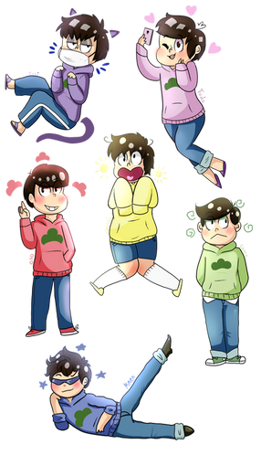 I like to headcanon that Karamatsu is pretty touch starved, so he likes when people touch and snuggle him. But personally, I'm like your OC. I don't like hugs or belly touches either, haha.