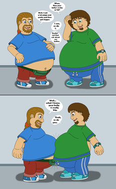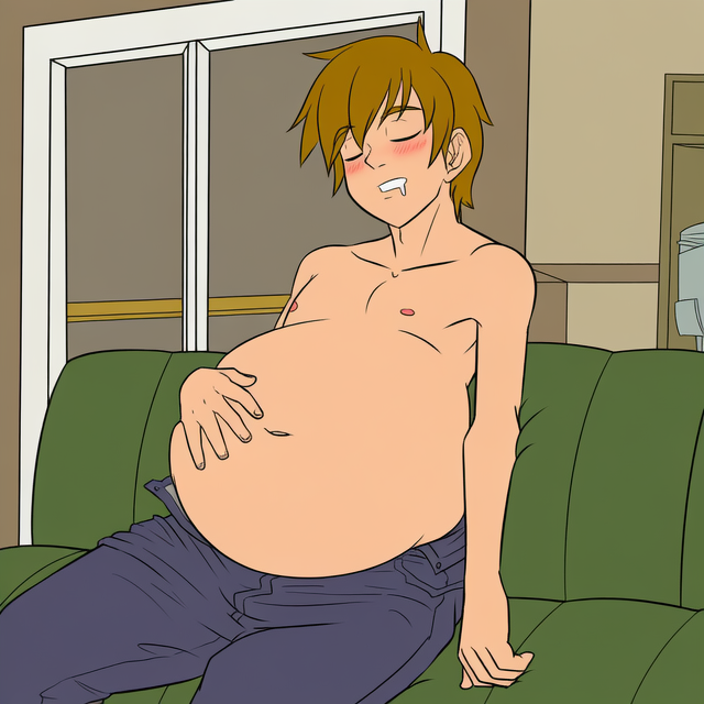 Shane barely registered Sebastian’s hands as they slid under his shirt and began kneading his bloated tummy. But then Seb pressed harder and Shane suddenly released a huge belch and collapsed backwards with a much more relaxed expression.