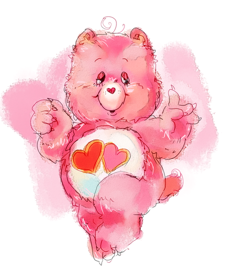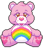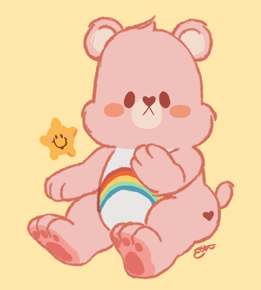 cheer bear !!!!!!!!!!! pure baby friend ! just wants warmth and hugs and like. happiness.Βthis ws a quick doodle pixel tbh lmk if i shld do more of the bearz! i love bedtime bear and grumpy bear a lot too !