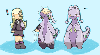 Became a thicker and slimy dragon. Also Goodra looks even more cute with those eyebrows. -w-