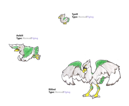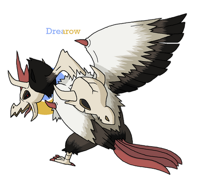 The goal here was to create an evolution or pre-evolution for an official Pokemon. I was thinking of turning my Skarmorday in first-off, but I feared that would be invalid because it was created before the contest was announced. I still wanted to evolve a Flying-type though, so I had to look somewhere else. The solution came to me in the form of Chatot, which, for all the trouble it's worth, has yet to evolve to or from any other Pokemon.
