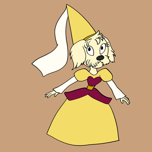 One of my oldest characters, from 2010, redesigned for "Those Toony Kids"A toon labradoodle who thinks she's an actual princess. Her rich parents bought her own princess tower for her room. She even has her friends act as servants sometimes and is one of Carol Carcal's only friends. She's a great party host and many toon girls wish to get invited to her parties. With the help of Carol, she invites every girl to her debutante ball except Deidra and her cousin Coco.