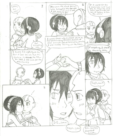This is an entry to =Kathytachan's contest. What I was trying to show through this was appreciating what you got because the person you love/care about gave enough thought about you to give you something, even if it was something you normally don't like.I don't own Toph or Aang