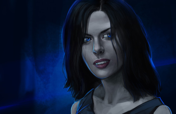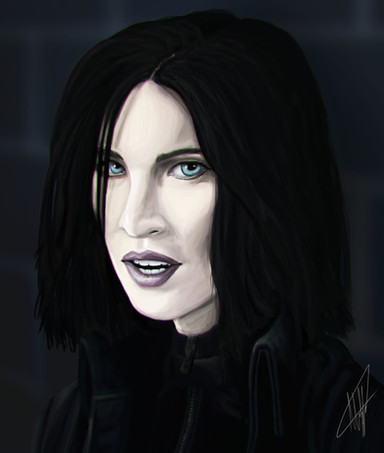 Digital painting portrait study with my wacom bamboo of Selene from the movie " Underworld"