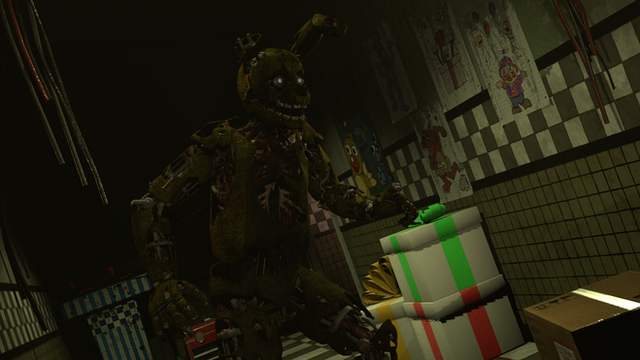 Springtrap: Why hello there! I didn't notice ya coming in here. Well how's about a good old story. It's my favorite!