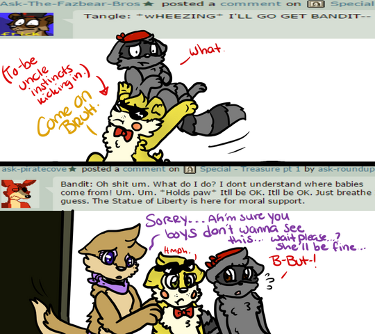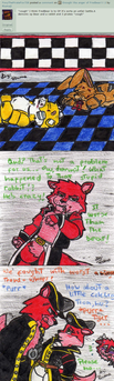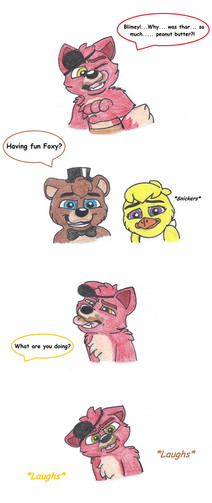 Springer: Foxy, what has gottin' into you?!Freddy: Hey guys! What's uuuuuuuuuuWhoa! What happened to you?