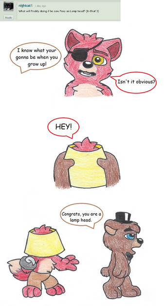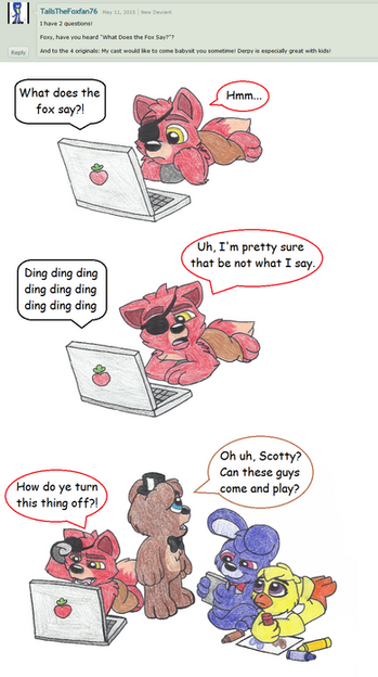 Freddy: Alright Foxy. You can get off of him now.