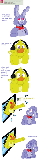 Hehe, that's so funny, sorry Chica and Bonnie but your reactions are awesome! π