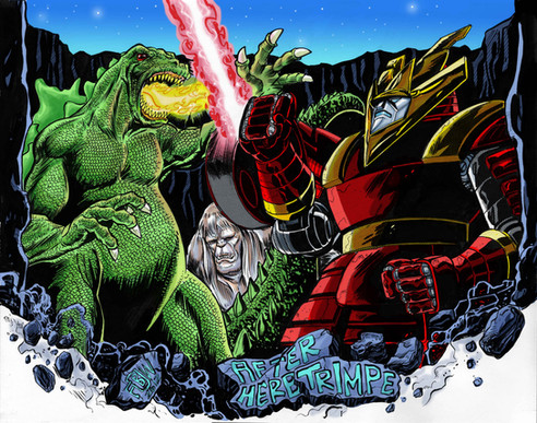I'd like to THANK everyone who Voted for my Combiner Robeast for the Voltron contest. It unfortunately didn't make it into the second bracket but I'm so happy that it did make it as far as it did. Here's a piece I did just to show how cool it might have been to see it battle Voltron Legendary Defender Of The Universe - GO VOLTRON FORCE!!!Related content