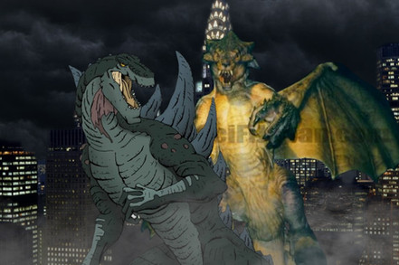 Godzilla: (Kicks Zilla's ass and obliterates him)