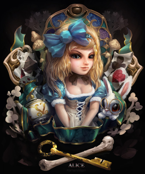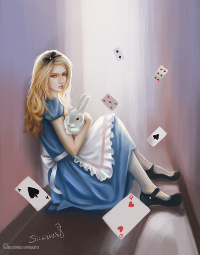 I love the that there seem to be some kind of darkness or spooky/strange in this piece with Alice in terms of presentation. It's like a mix between Disney orginal Alice and American McGee's darker portrayal of Alice in Wonderland.