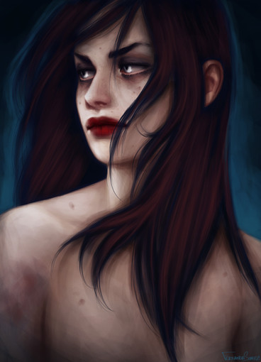 Pure gorgeousness. Love that touch of red red blood on her lips and the dangerous look she's got about her. Well done!