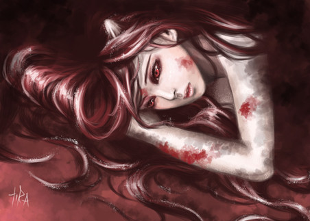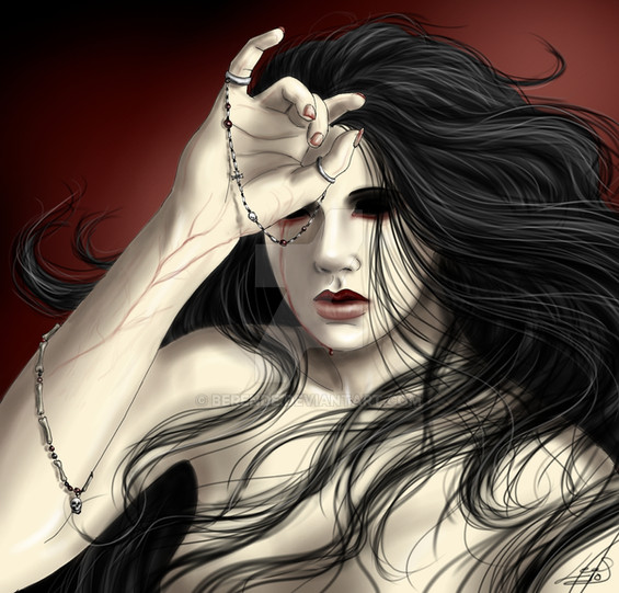 the contrast between her cold body and warm, hot blood and mysterious darkness around her are wonderful
