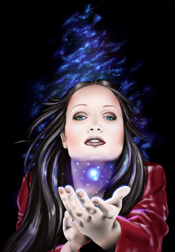 I think the blue glow should light up her face a little, but great job on the hands!