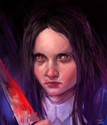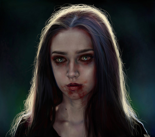 Gorgeous work! I especially love her crystal-blue eyes in comparison to the rest of the picture which is very dark :3