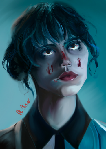 I highly enjoyed studying it, trying to notice all the little touch you have added everywhere. The clip would be the best little touch for me, although not as little as the freckles but definitely has puts me in awe more than the blood.