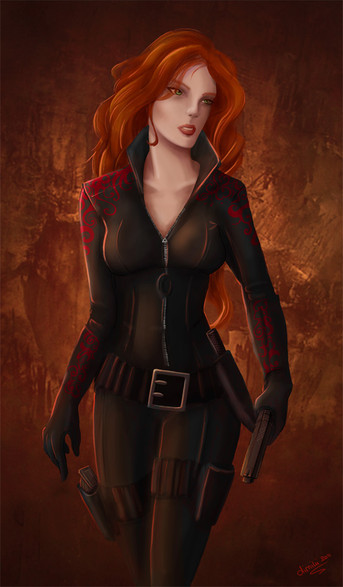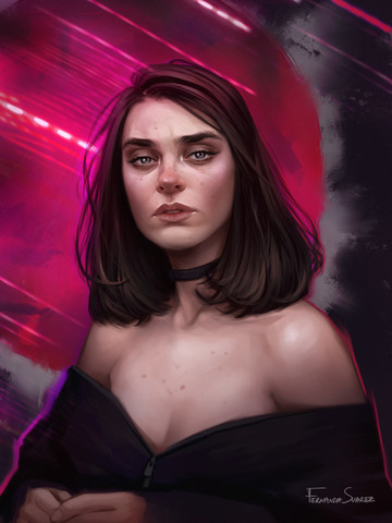 Wooow, this looks super intense. The texture on her clothing is so perfect.. and her face, hair, and lips. @_@ She looks hardened.