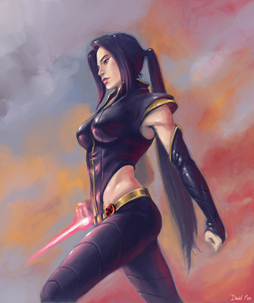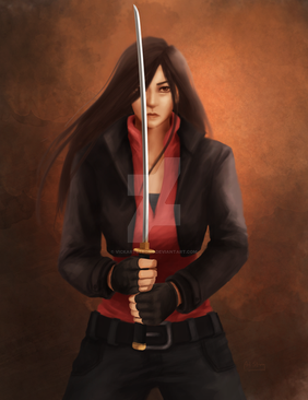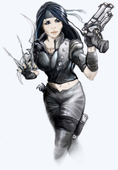 A lot of your previous great points shine her too, her hair, her great skin, great metal painting and posing but in this piece the colours shine a little more that those. It's most evident on her butterfly knife, the colours are used so well to create the form of that knife and show the direction and intensity of the light. Love it, that knife is my favourite thing about this. Although I like all the things mentioned above as well.