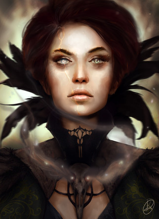 looks like an older Morgan from "Spooksville" TV show (here's a picture of her 41.media.tumblr.com/a5d3aa37b6… ).She too is a witch in that series gorgeous painting, love it!