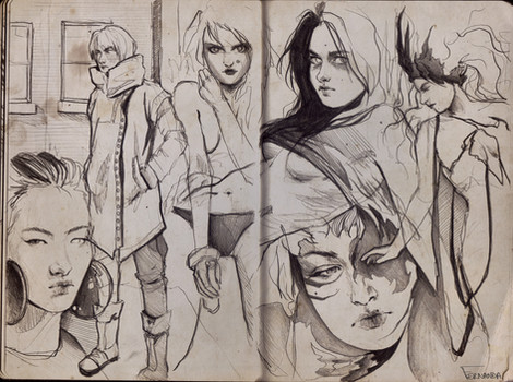 Beautiful sketches, I especially love the one on the right and the winking one at the top!