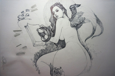 That is fa-a-a-a-ancy. But really, I love how her wings are torn. So much realism in one drawing, yo.