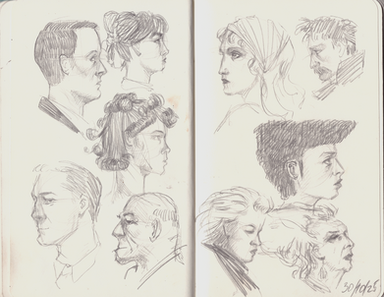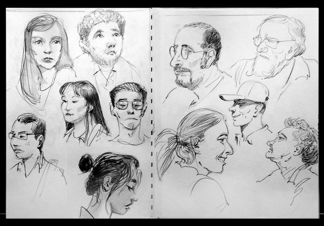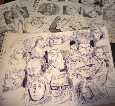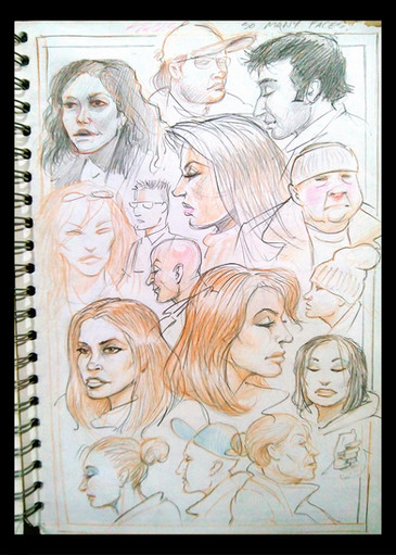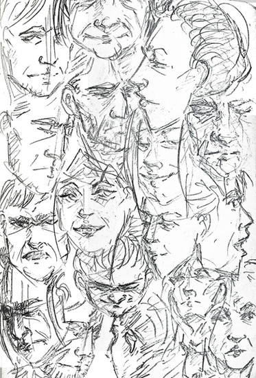 I can see....Robert Pattison and Ian Somerhalder? I think? LOL Awesome sketches! Oh! And I think the woman with the short hair is Mal from Inception?