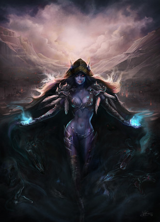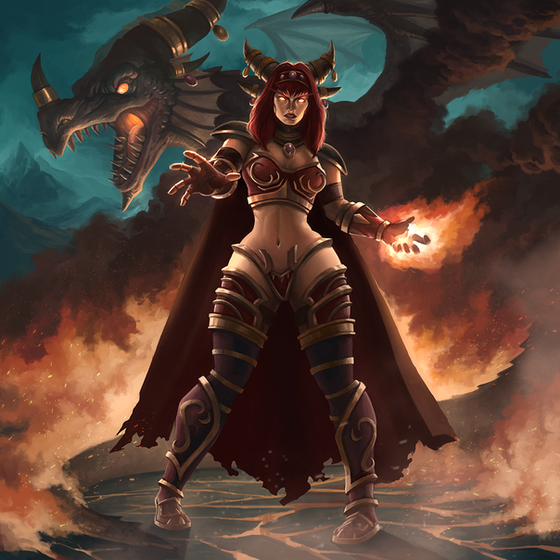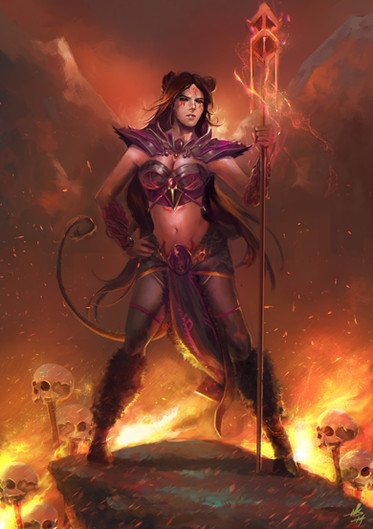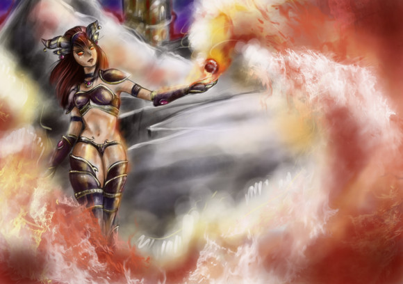 i love the painters feel of this, the big brush strokes of her cape and the background and the fire its beautiful... and this sounds strange but her side boob (yes i said that) looks amazingly real