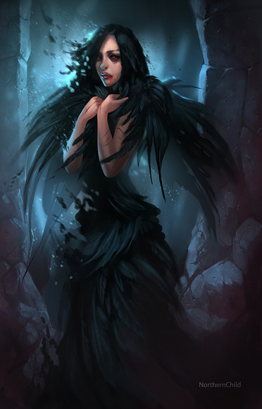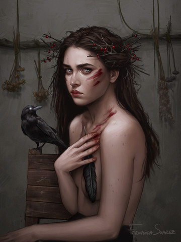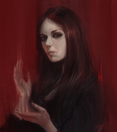 Love the detail on the bloody hand and the expression of her face is chilling, you also did an amazing work with the shading of shadows and her outfit looks very otherworldly.