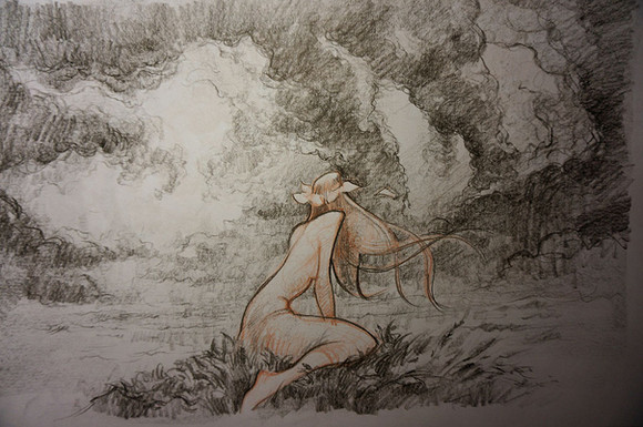 Woooooooooooow. This is really amazing work! I love the posture, the face expression and the way you vary the line width. Is this a graphite or charcoal or even a dry marker?