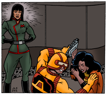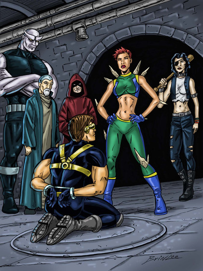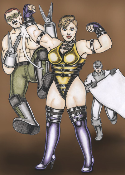 An action scene to showcase Sorceress.Here she's up against some old adversaries: Wild-Thing and Meat-Head, two members of The Reprobates.