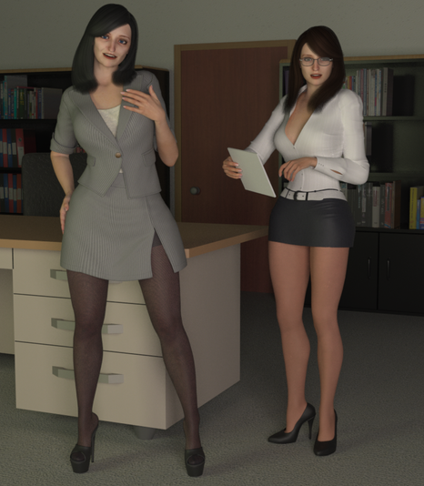 The redheaded librarian on the right is Calithne Doomweaver, and belongs to akizz