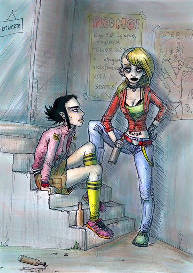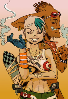I totally love the colours in this! Very amazing work! The details in the background look great and I love how strong the characters are!