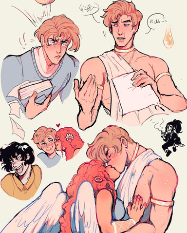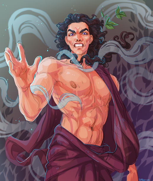 MMM MORE OC STUFF,,, Here's Theo in the gods au... He's protecting his WIFEEEI figured that when he uses his powers I wanted his hair to glow/eyes to go milk white-- since he'd look more godly that way, HE ALSO HAS LITTLE FRECKLES if you can see them NJFRNJ
