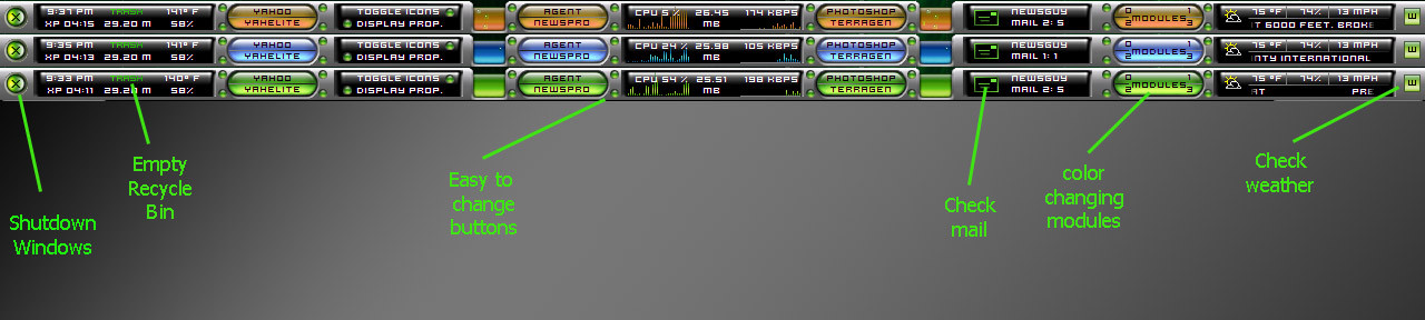 Inspired by and making use of graphics from firefly6's Litestep theme of same name. The suite contains: WindowBlinds, NextSTART, Coolplayer, Colorpad and Beatnik. Permission in zip.