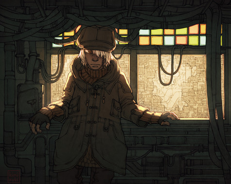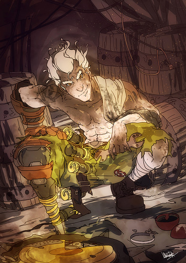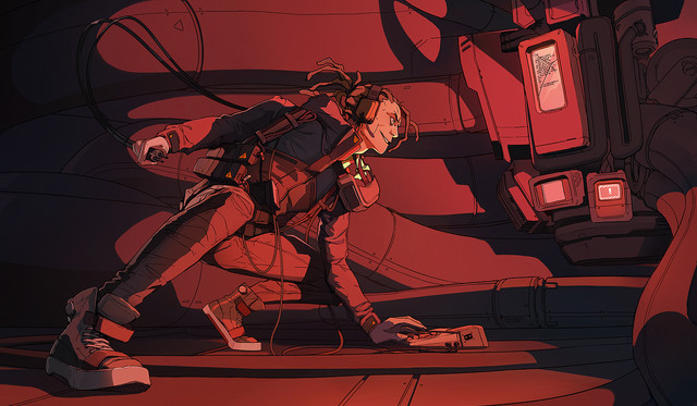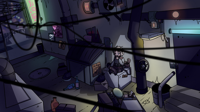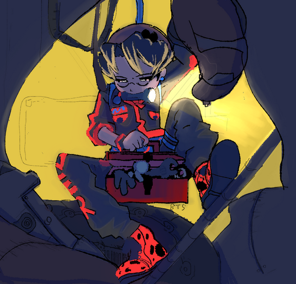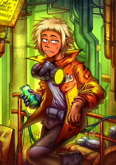 Aaaaahhhhh what a nice dynamic angle, I love all of the details in the environment and the orange lighting, this is such a nice moody piece~ <3