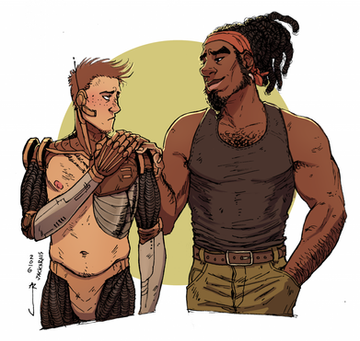 Raz and Trigger from Ghost Junk--I was always fond of sunflowers and the palette I went with, so here we are!