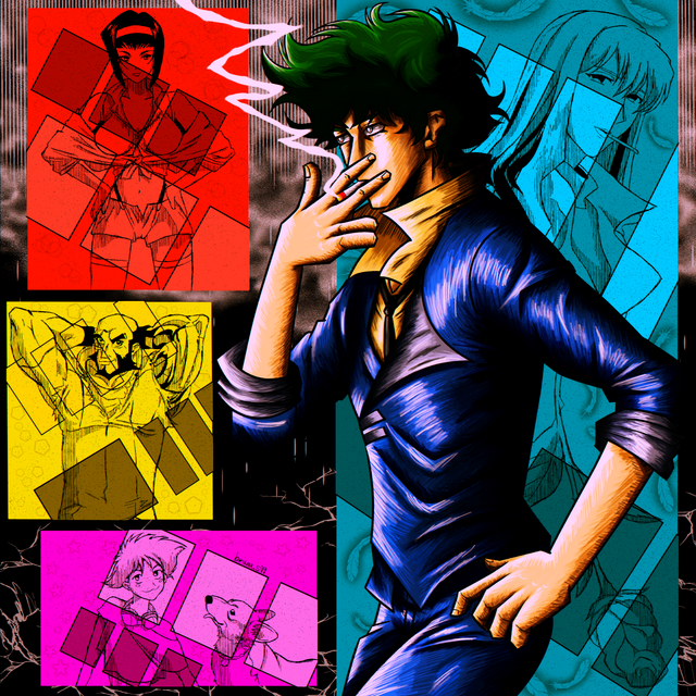 #ed #faye #spike #bebop #cowboybebop #fayevalentine #jetblack #spikespiegel #feathernotes