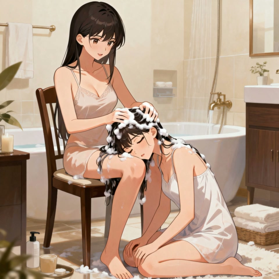 Anna-Studio - Teen boy in a simple home dress with sister [🤖]