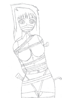 not a big fan of the character, but you make any character look good, especially witha delicious tape gag! i should say im not a fan of the art style from the anime. the characters are so pointy they could pop a blimp. XD awesome job!