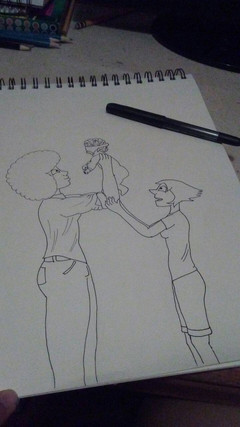 I've been doing a lot of restudying, it's helped me distract myself from a few things so I do apologize if my art style and technique are all over the place heh ^.^Yes I LIVE for human au pearlnet even more with baby sardonyx, I was inspired by a post on my facebook, if anyone can point me to where the drawing similar to this is so I can give credit for inspiration I would greatly appreciate it!! My little cousin helped me with the cousins, she walked in on me drawing this and well not too bad!