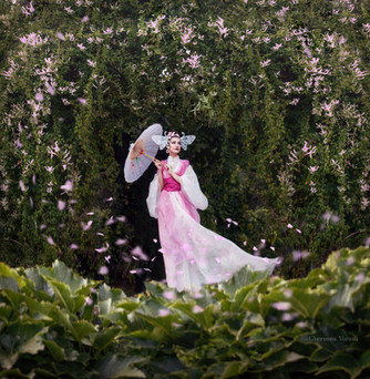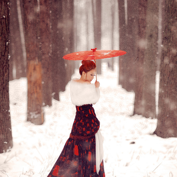 Absolutely beautiful photo. Just the way the clothing and parasol blend in with the natural setting, the pose, all of it. Amazing work.