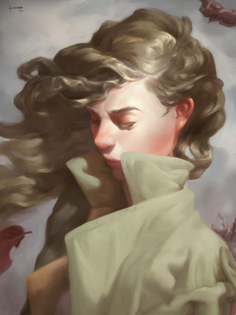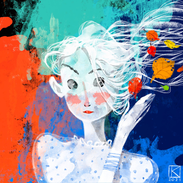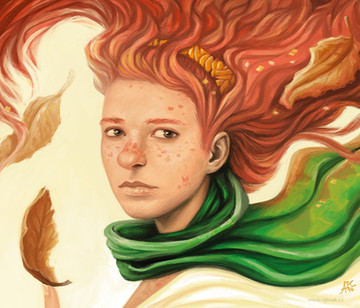 Stupenda *^* Quando ho visto la miniatura pensavo che le foglie fossero fuoco, ma certo non si puΓ² dire che non scaldino la scena. Anche a me piacciono i toni che hai usato, anche se delicati su di lei. Sono caldi come le foglie autunnali (e via con la poesia). Comunque, seriamente, mi piace un sacco!! *^*