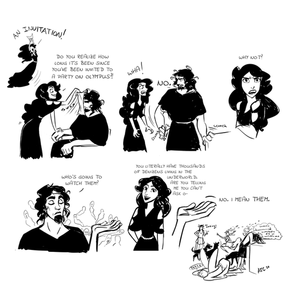il bello è che nei media il cattivo è sempre ade, solo perchè è il dio dell'oltretomba, che invece è il migliore tra i tre fratelli! (non vedo l'ora di vederlo disegnato nella sua versione chic, tra l'altro: ho amato come lo hai rappresentato nei fumetti su tumblr... è così pateticamente carino XDDD)