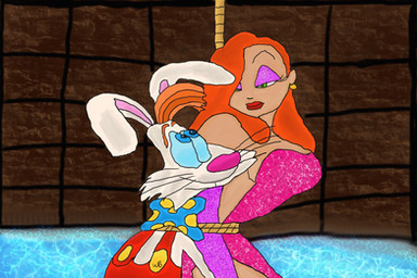 Jessica Rabbit is forced into position while Tick-Tock spots his next meal.-----