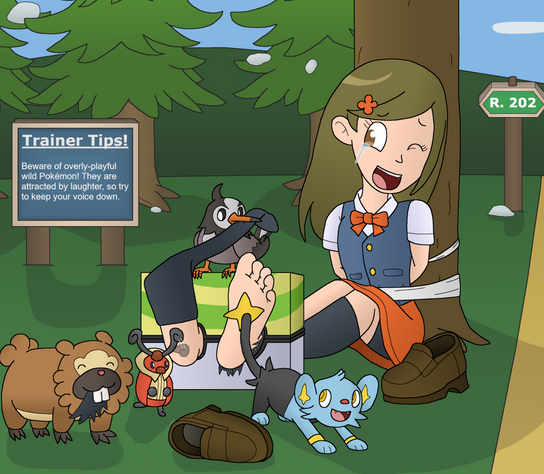 Oh, there are a lot of workers that look the same, but this lady, Wanda is a special one. Always in trouble and scared from pokemon... maybe spend some time with these playful bugs will help her to don't fear them anymore!