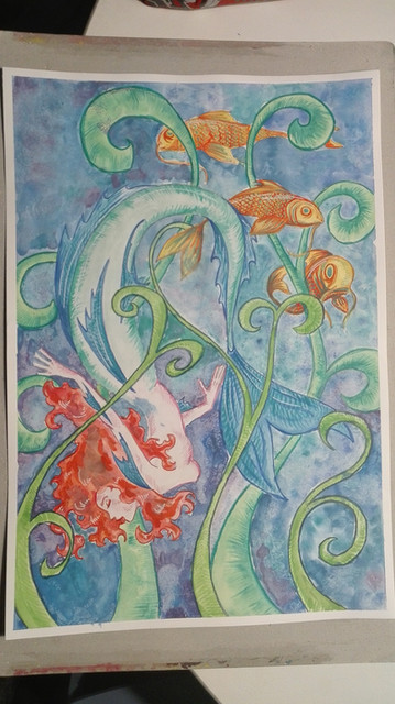 je ne trouve pas, par rapport au dos elle est bien placé dans la position voulu, après le bras est mal dessiné mais c'est une autre histoire. Sinon c'est la tête qui ne va pas dans le prolongement, on est pas censé voir autant son visage, mais c'est une erreur courante que j'assume, les sirènes sont plus souple.