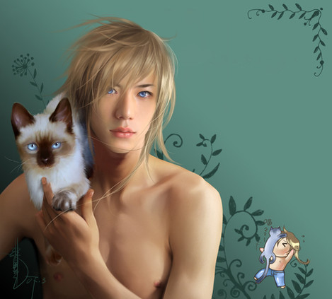 sexy! He's just too beautiful for words! -sniffs- I wish he a was real! Anyway! One of the things that caught my attention was how you had is hair kind of bumped up on the tree. thought that was a very nice effect. It was really natural. The combination of real and fantasy is very nice. It's a good blend.